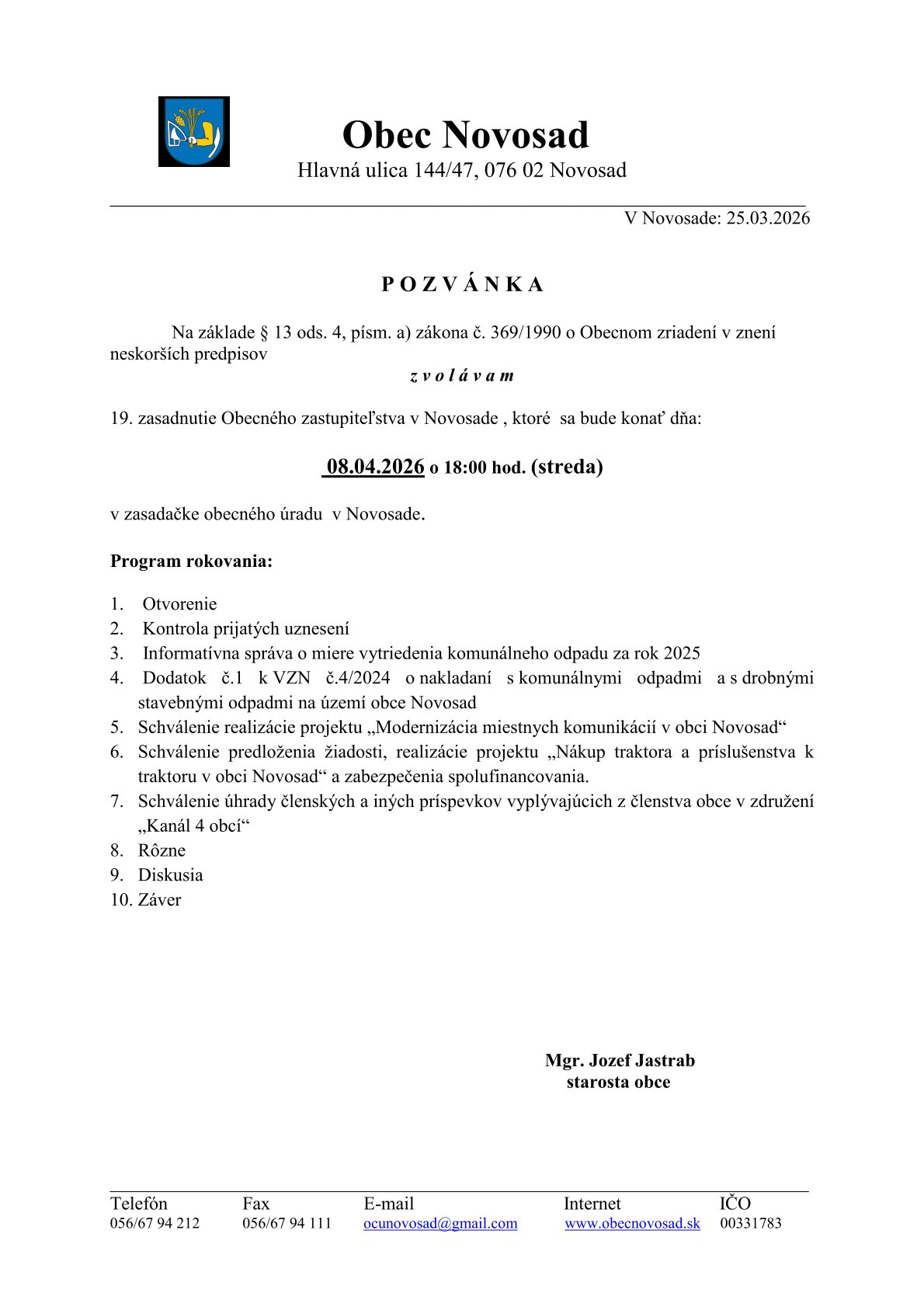 Oficiálne stránky využívajú doménu obecnovosad.sk.